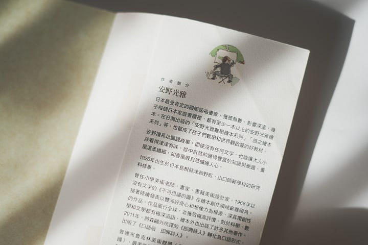 曾獲安徒生獎、波隆那插畫獎的安野光雅(1926-2020),是少見喜歡將數學、科學等概念加入畫作、腦洞超級大開的繪本作家。但可別以為這表示他的作品就是「知識繪本」喔!由師範學校畢業的安野光雅,原本在家鄉島根縣的一所小學擔任美術老師,到了1967年才到東京展開畫家生涯,直至過世前發表過數十本圖畫書,本本都是美感高超、充滿百看不厭細節的藝術級作品。