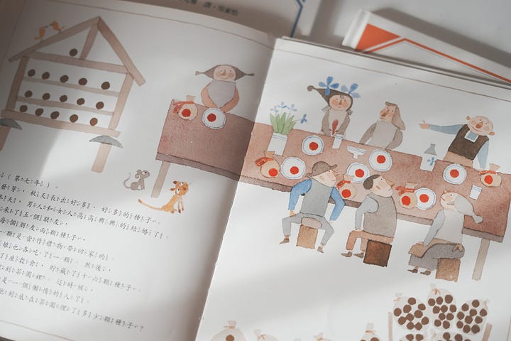 安野光雅或許深諳台灣過日子即是數饅頭的常民文化,颱風假大家乖乖待在家,♫ 再唱一句:一顆葵瓜子裝進嘴巴,兩顆葵瓜子拿來塞塞牙 🐿️
