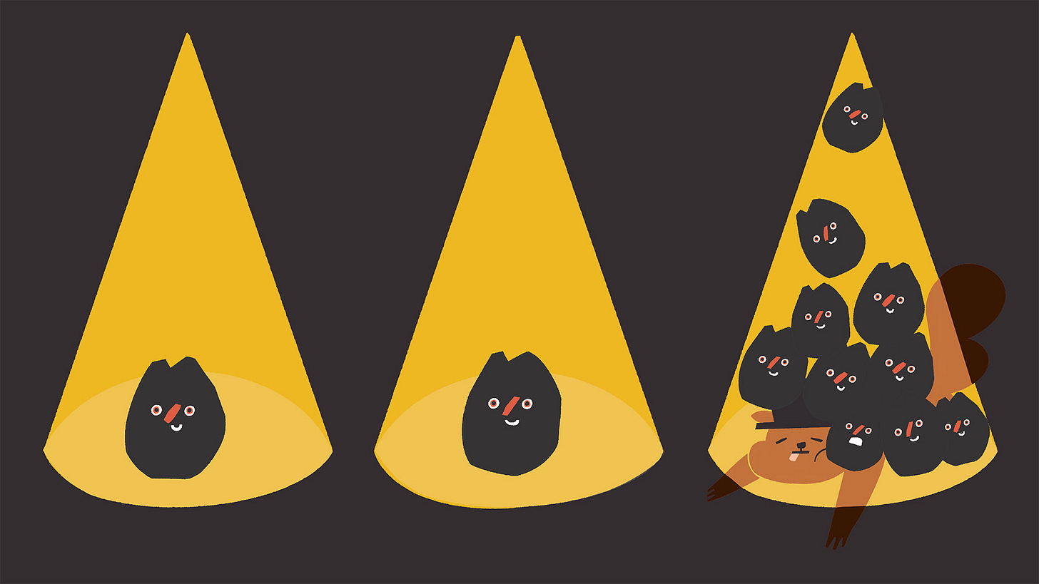 還記得搖滾風格〈花栗鼠機器人〉中唱著:「1顆、2顆、3顆,好多顆!」的場景嗎?每次歌唱到這,大人小孩都會很興奮地跟著畫面裡的葵瓜子一起數,不知不覺也偷渡了「數量」的概念在快樂的音樂裡面。令人頭痛的數學啊⋯⋯此刻好像也可愛了起來。