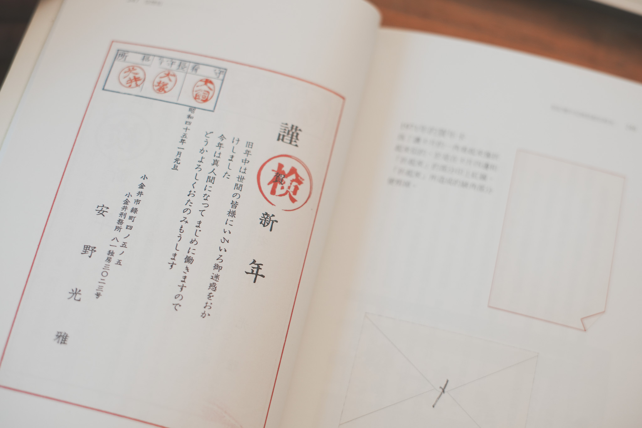 安雅光雅一直以來都有寄賀年卡的習慣,只是年復一年間也會感到無聊,於是他在1970年空想出了一個「假設自己被拘禁於看守所」的賀年卡版本,甚至特地還刻了假的看守長、看守員的印章⋯⋯賀卡上頭寫著: